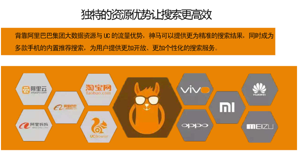 UC神馬搜索擁有中國(guó)移動(dòng)瀏覽器鼎力支持,實(shí)力助陣讓UC神馬搜索更卓越的發(fā)展,UC神馬搜索包攬了全球“娛樂(lè)化、年輕化、有文化”的優(yōu)質(zhì)網(wǎng)民資源,高質(zhì)量的用戶,帶來(lái)更直接的商機(jī)轉(zhuǎn)化,引領(lǐng)移動(dòng)搜索大市場(chǎng)。