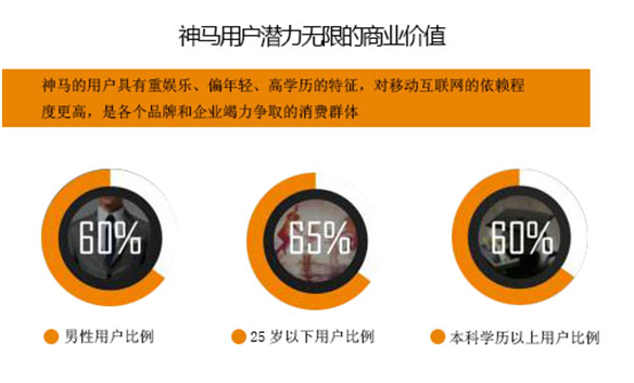 UC神馬搜索依托強(qiáng)大搜索背景——UC瀏覽器,擁有大流量數(shù)據(jù)背景,每日億級(jí)PV流量。月度活躍用戶過(guò)億。國(guó)內(nèi)移動(dòng)搜索市場(chǎng)用戶;滲透率超過(guò)20%。在網(wǎng)絡(luò)購(gòu)物,游戲和移動(dòng)閱讀等方面,用戶滲透率更是超過(guò)了60%,遠(yuǎn)超百度推廣。神馬搜索推廣憑借著無(wú)線端廣闊的流量占據(jù)移動(dòng)搜索大市場(chǎng)。